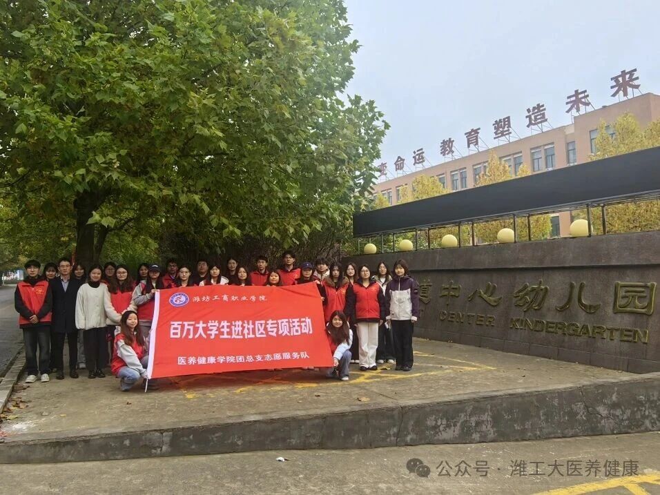 2025年10月31日星期五,“百万大学生进社区”专项活动温暖启幕。在党支部书记张栋栋、团总支书记李聪的带队引领下,医养健康学院的志愿者们走进诸城市密州街道中心幼儿园,与孩子们开展了趣味互动、健康科普,打扫活动场地等暖心活动。