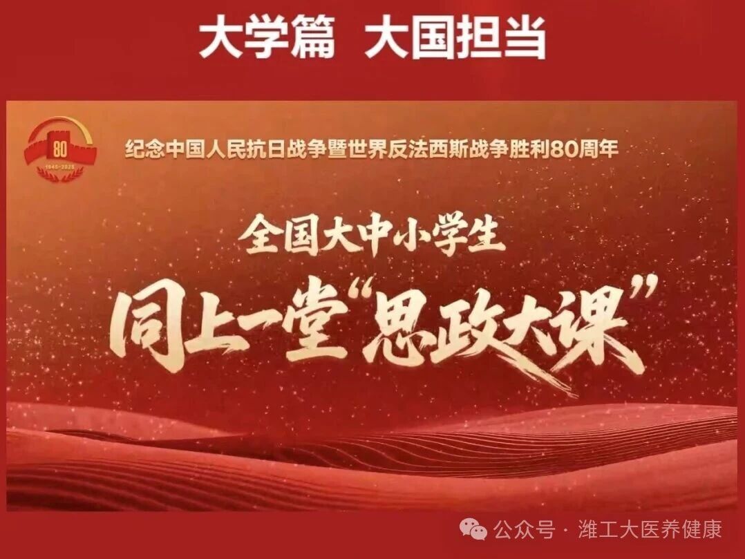 为纪念中国人民抗日战争暨世界反法西斯战争胜利80周年,医养健康学院组织全体新生同上一堂以“弘扬伟大抗战精神 做光荣自豪中国人——纪念中国人民抗日战争暨世界反法西斯战争胜利80周年”为主题的思政大课。