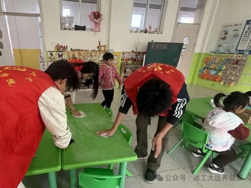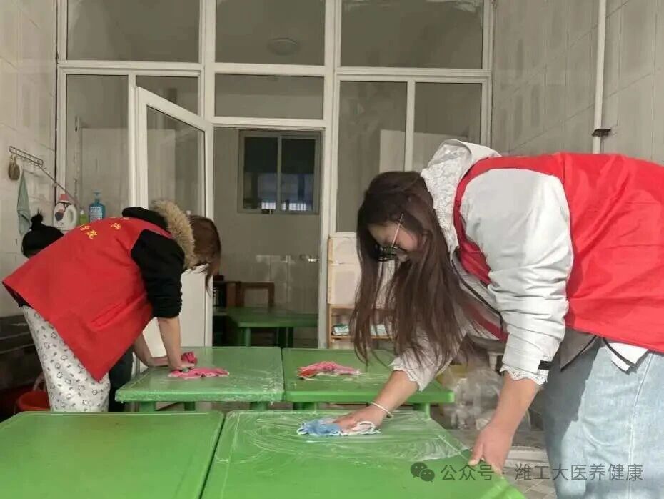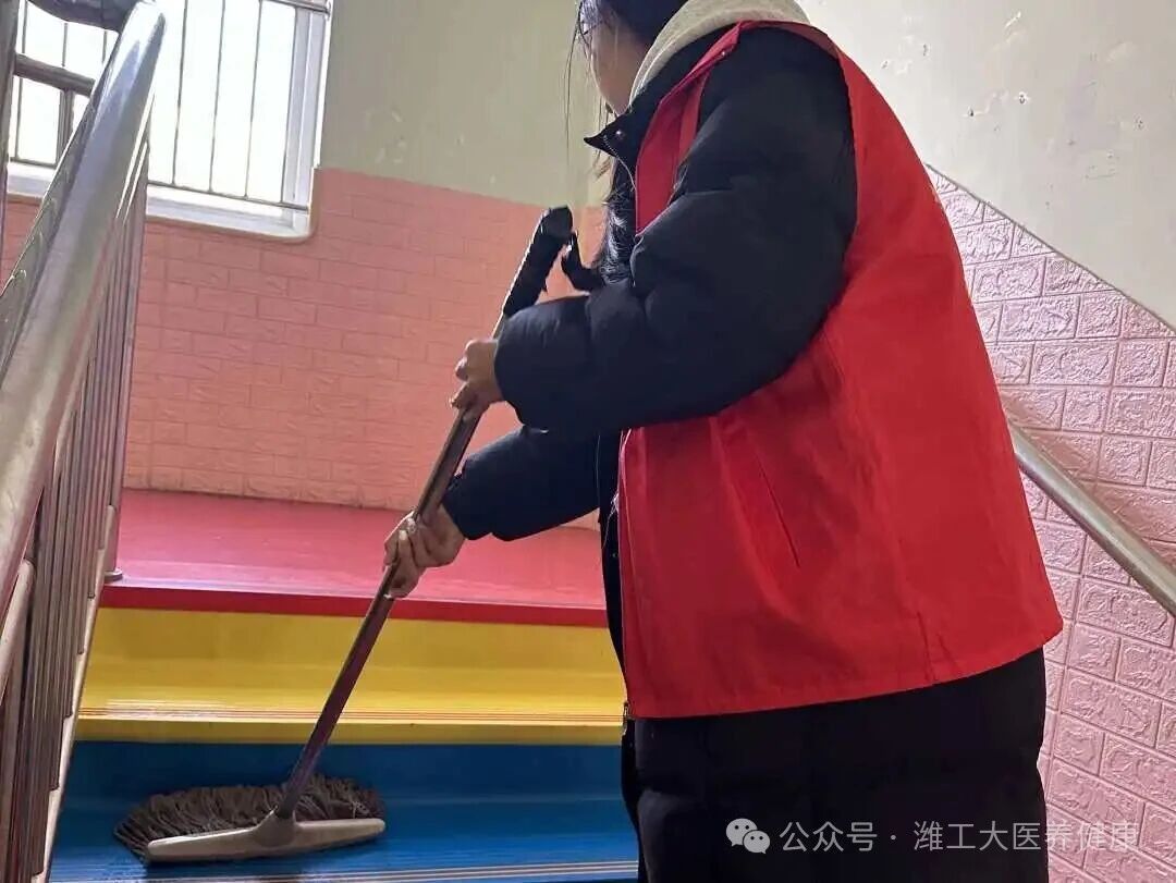除了陪伴与科普,志愿者们还拿起抹布、扫帚,细致擦拭教室门窗、清理户外落叶,擦净的不止是尘埃,更是为孩子们铺就了更安心的活动空间,弯腰劳作的身影里,藏着的是“互助”与“责任”的种子。