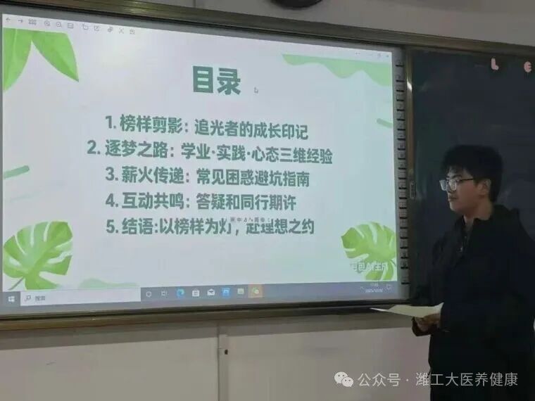 为发挥优秀学生的示范引领作用,激发全体学子的学习热情与奋斗动力,2025年10月30日,医养健康学院在尚德楼举办以“榜样引领,筑梦前行”为主题的优秀学生分享会。