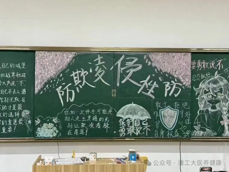 为深化校园安全教育,营造文明和谐的成长环境,9月8日,医养健康学院组织开展了“防欺凌、防性侵”主题班会、黑板报活动。此次活动以班级为单位,通过创意设计与知识宣传相结合的形式,引导学生树立法治意识,增强自我保护能力,为构建平安校园注入青春力量。