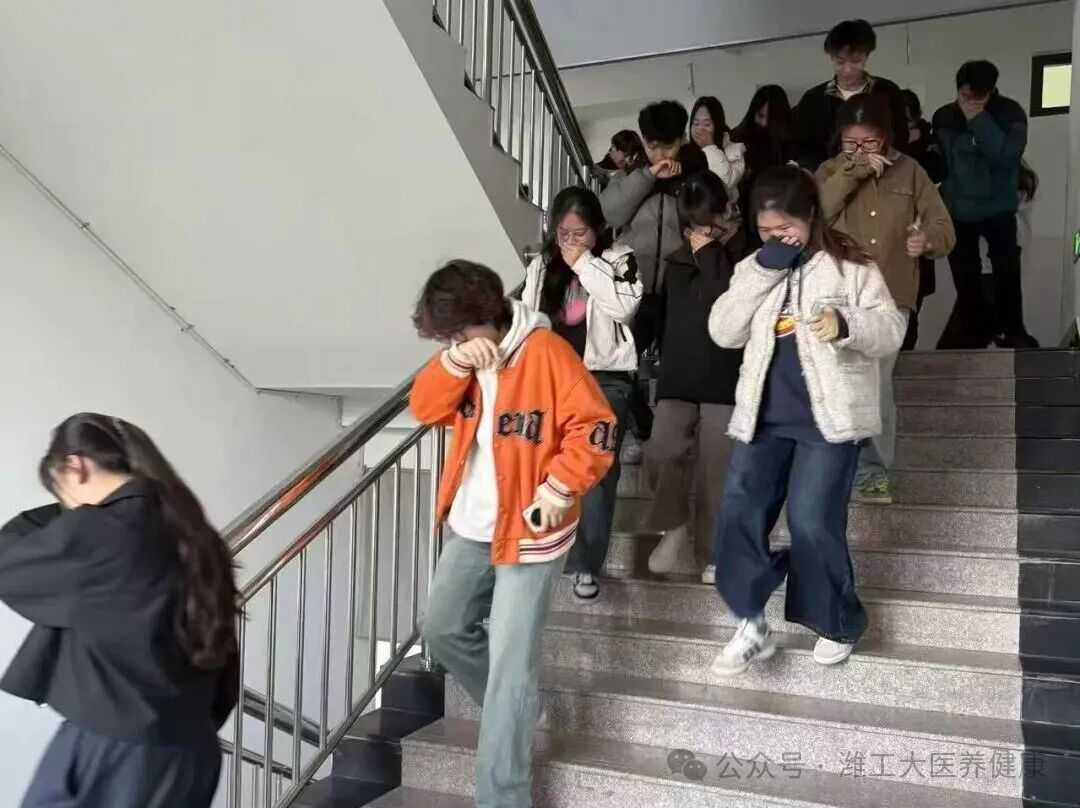 消防警报声响起的瞬间,演练即刻开始。各个班级迅速进入状态,按照预设疏散方案,从容组织学生弯腰低头、手护口鼻,沿墙壁快速撤离至指定安全地带。全程学生们听从指令、秩序井然,展现出优秀的应急能力与纪律观念