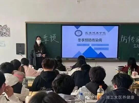 班会上,辅导员们结合医养健康专业特色,围绕冬季高发疾病展开系统性讲解。通过图文对照、案例分析等直观形式,重点科普了流感、诺如病毒感染性腹泻、水痘等常见传染病的传播途径与典型症状,细致区分不同疾病的防治差异——例如流感的高热、全身酸痛等特征与普通感冒的区别,诺如病毒感染后儿童多呕吐、成人多腹泻的表现差异等。针对医养健康专业学生的知识背景,辅导员还特别解读了疾病预防中的营养学逻辑,强调合理膳食在增强免疫力中的核心作用。