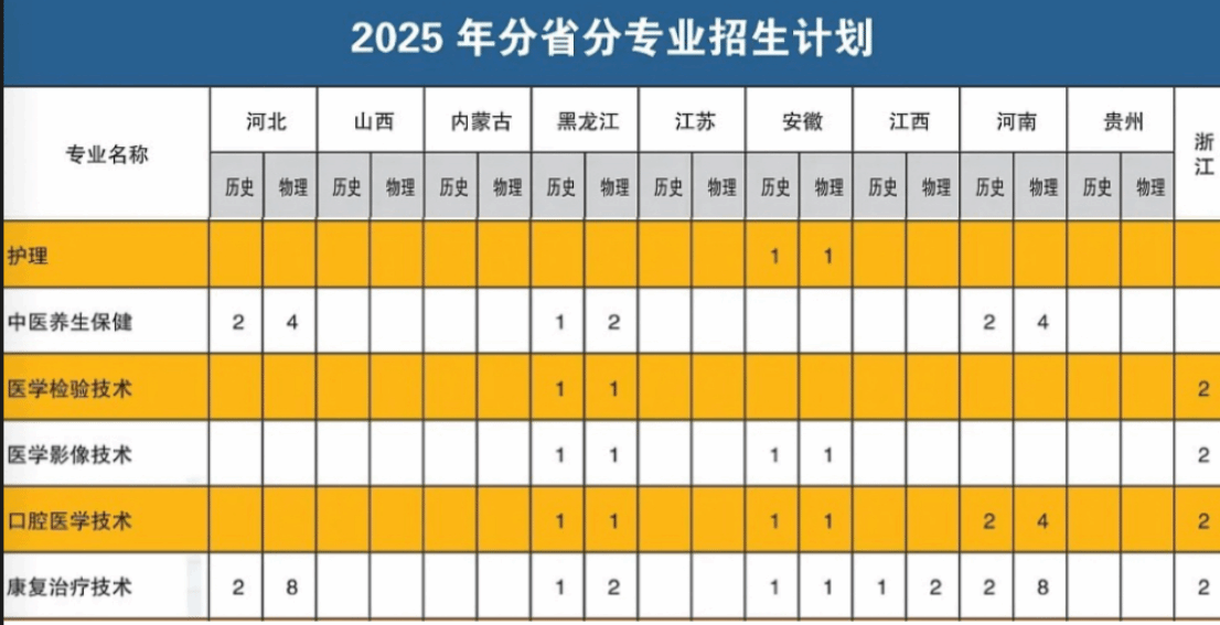 医养健康学院下设有护理、智慧健康养老服务与管理、医学营养、中医养生保健、口腔医学技术、医学检验技术、康复治疗技术和医学影像技术等8个专业,拥有医养健康实训中心1处,建有16个护理专业实训室、5个口腔医学技术实训室、3个医学检验实训室、2个康复护理实训室、1个中医养生实训室、1个老年护理实训室等。