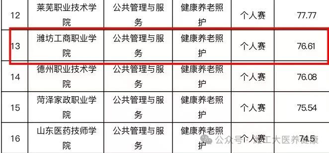 12月14日至15日,第十七届山东省职业院校技能大赛高职组“健康养老照护”赛项在济南护理职业学院落下帷幕。本赛项具体赛程2天,来自全省的37支代表队参加比赛,经过激烈角逐,我院参赛选手杨智岚同学在教师范成华、王坤峰指导下,凭借扎实的专业知识和出色的实践操作,最终以总成绩第十三名荣获三等奖。