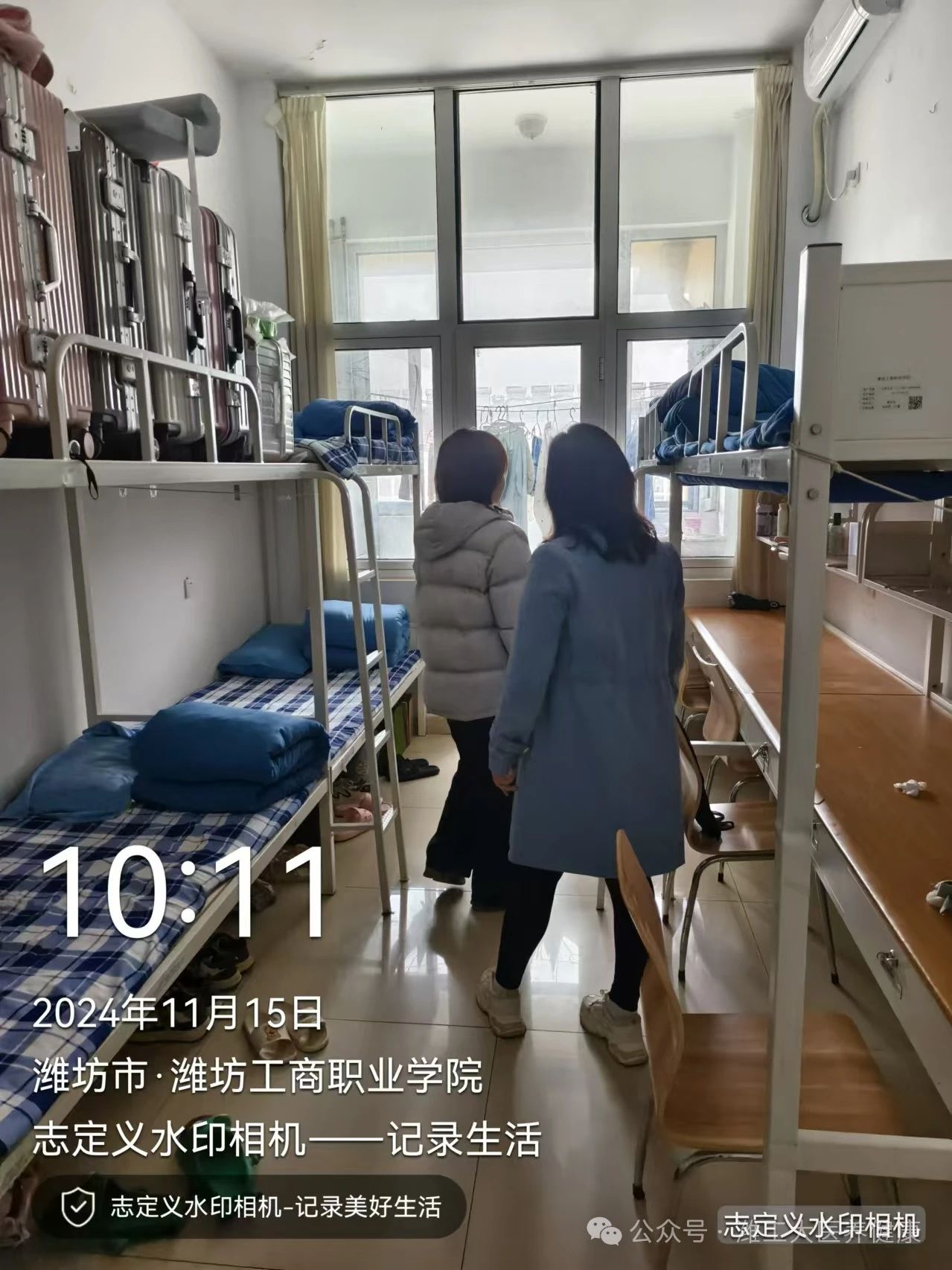 检查过程有条不紊地进行着。每打开一扇宿舍门,都是一次责任的审视。他们认真检查插线板是否存在过载现象,电线有无老化或私拉乱接的问题;对于宿舍内的易燃物品,也逐一排查,确保其存放得当。遇到学生,领导和辅导员们还亲切地询问同学们在宿舍生活中的情况,将安全教育融入到交流之中,让同学们深刻认识到宿舍安全的重要性,形成人人重视安全、人人维护安全的良好氛围。