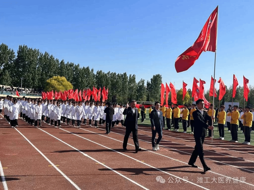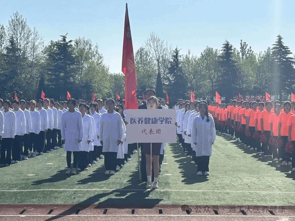 踏着整齐的步伐向主席台走来的是医养健康学院方队,精神抖擞,器宇轩昂。他们身穿白衣,肩负起救死扶伤的重任,用智慧和勇气为人类的健康事业贡献力量。青春在跃动中勃发,团结在拼搏中彰显!让我们存一份期待,留一份期盼,预祝医养健康学院在本次运动会取得优异成绩,展医养精神,扬青春风采!