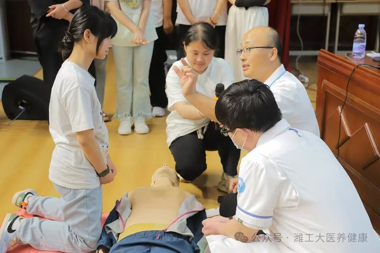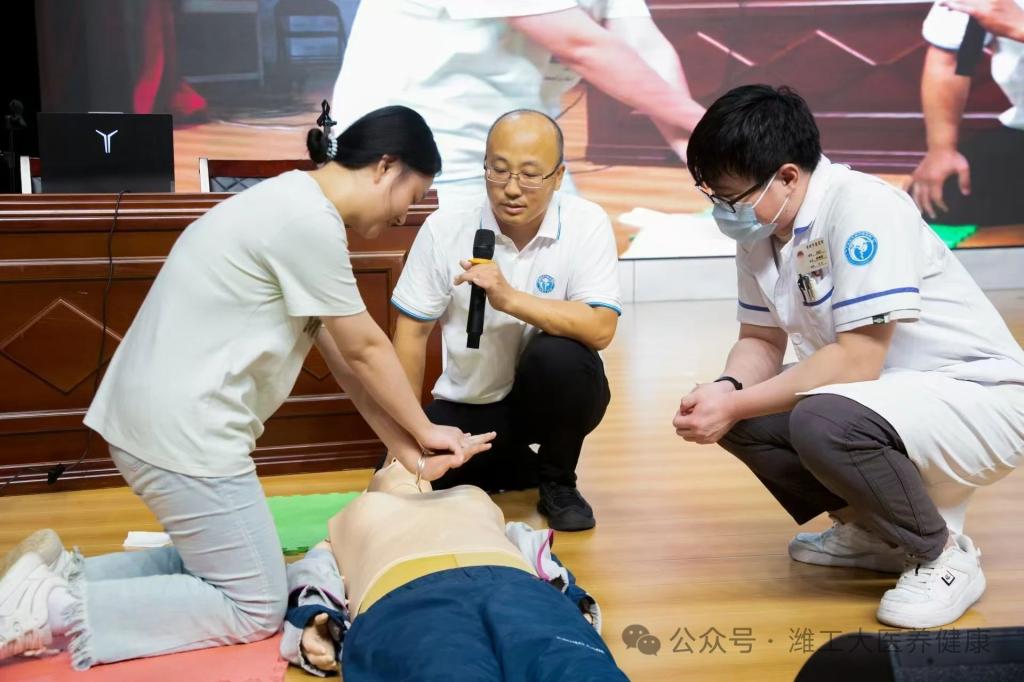 师生们摩拳擦掌、跃跃欲试,纷纷化身“急救员”在医护人员的指导下逐一进行模拟演练,亲身体验急救技能的实操。从生疏到熟练,每一次按压、每一次冲击都凝聚着对生命的敬畏与尊重。