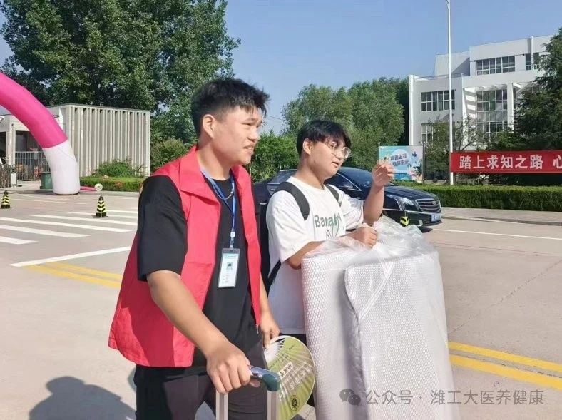 医养健康学院迎新现场设置在西门口、图书信息楼以南两处,实现两地迎新。学院在诸城火车站、汽车站与学校之间设立了接驳车,循环接送家长和学生,提供便捷的校园接站体验。