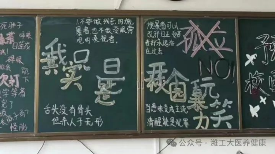 4月8日,辅导员通过“黑板报”“辩论赛”“座谈会”等多种形式,向同学们讲述了校园欺凌的相关知识,并提醒同学们在日常生活中要增强自我保护意识,提高自我保护能力。