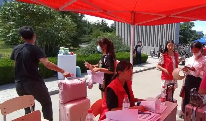 根据学校相关规定,学院在校西门口设置入校专用通道,要求前来报到的新生全程佩戴口罩,保持1米以上间隔距离,有序完成体温检测,身份确认,健康码、行程卡、48小时核酸阴性检测报告核验。