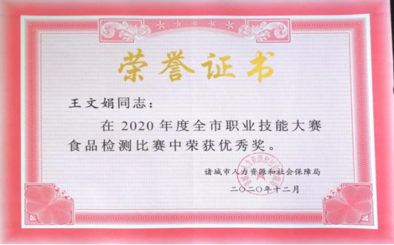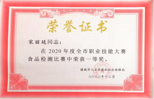 民以食为天,食以安为先。为全面提升食品行业从业人员的整体素质和专业技能水平,保障食品产品质量与安全,由诸城市人才工作领导小组牵头组织,诸城市人力资源和社会保障局、诸城市教育和体育局等部门具体承办实施2020年诸城市职工职业技能大赛食品检测赛项,于2020年11月24日在潍坊工商职业学院医养健康学院举行。其中,我院教师取得了可喜的成绩。