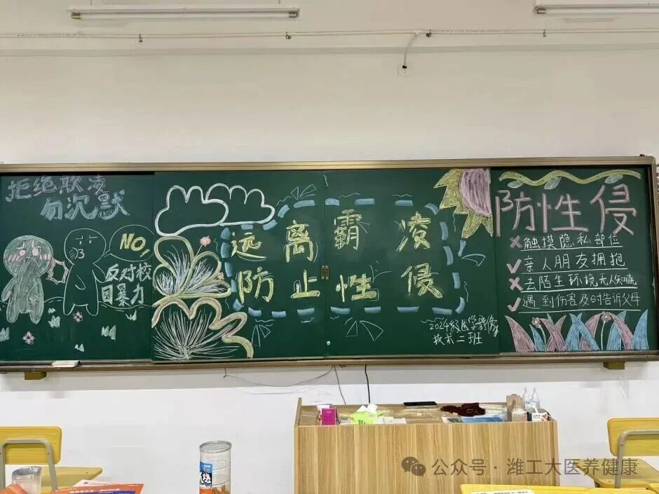 为深化校园安全教育,营造文明和谐的成长环境,9月8日,医养健康学院组织开展了“防欺凌、防性侵”主题班会、黑板报活动。此次活动以班级为单位,通过创意设计与知识宣传相结合的形式,引导学生树立法治意识,增强自我保护能力,为构建平安校园注入青春力量。