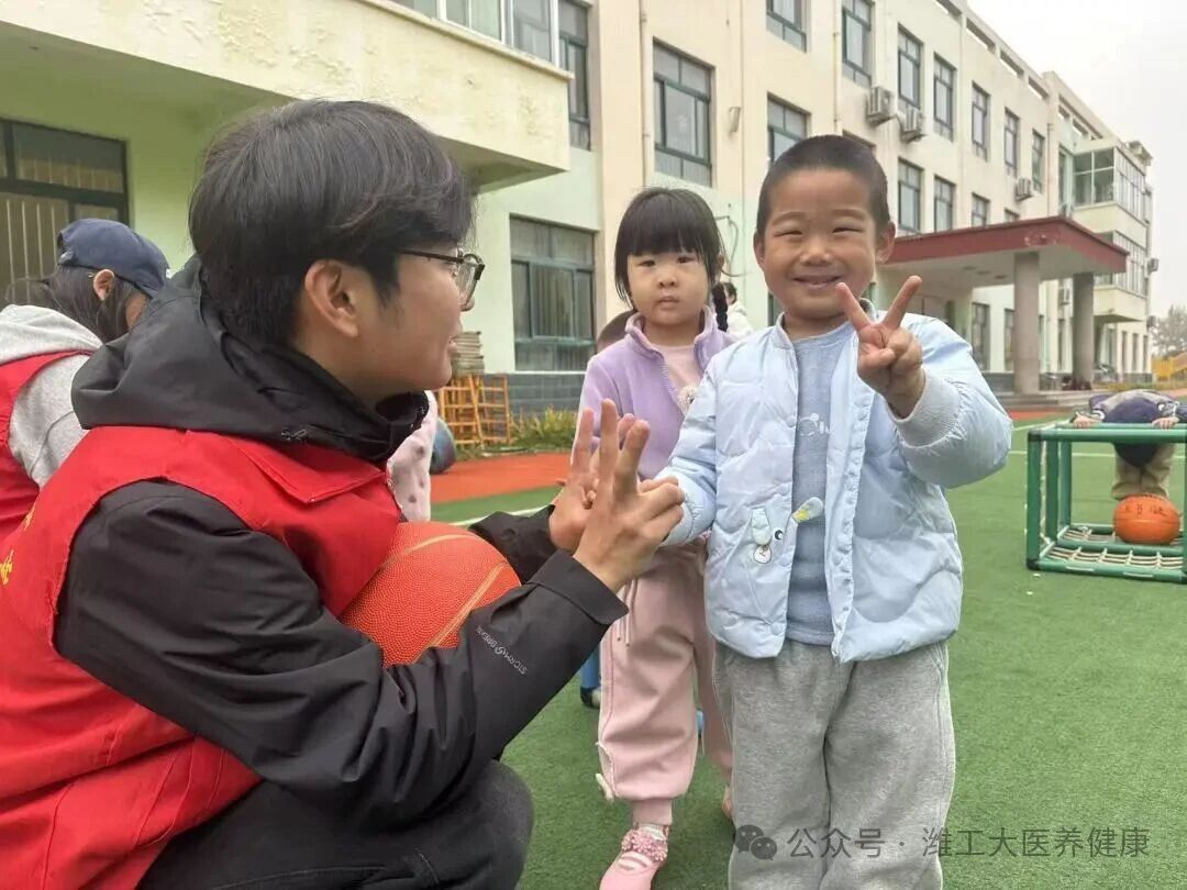 在阳光下的幼儿园操场,三下乡志愿者与小朋友们拍下温馨合照,镜头里满是稚嫩笑脸与亲密互动。随后大家一起玩“老鹰捉小鸡”,志愿者还手把手教小朋友拍球传球,欢声笑语中,纯粹的快乐成了彼此珍贵的回忆。