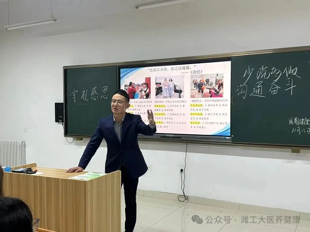 为了让成长之路始终温润底色,以守礼之心待人、怀感恩之情处世。医养健康学院张栋栋书记于10月12日在尚德楼315教室主持开展守礼感恩,奋斗沟通的专题会议,为师生成长锚定方向。