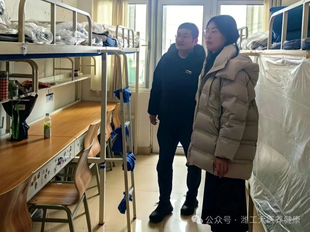 过程中,辅导员们逐一巡查楼道公共区域及宿舍内部,重点聚焦消防安全、用电规范及卫生环境,老师们仔细查看宿舍的每一个细节,细致了解学生宿舍的具体情况。