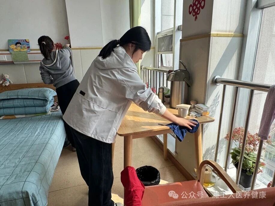 活动最后,我院学生以两两一组形式,在香柏养老集团开展志愿服务,协助工作人员进行环境卫生清洁等工作,用实际行动践行医养服务初心,在实践中提升服务意识与职业素养,同时也让学生近距离感受养老服务工作的温度与责任。