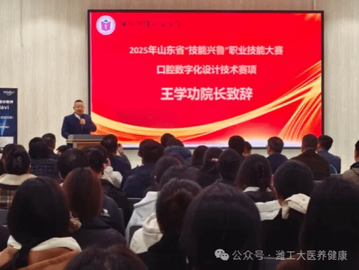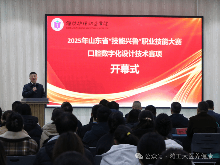 此次竞赛由山东省民营牙科协会主办、潍坊护理职业学院承办、山东牙道医疗科技有限公司协办,是全省口腔行业高水平的技能比拼盛会。开幕式上,潍坊护理职业学院党委委员兼副院长王学功在致辞中强调,职业技能竞赛是推动口腔数字化技术人才培养、深化教育教学改革的关键力量,这一观点与我校医养健康学院长期秉持的 “以赛促学、以赛育人” 理念高度契合,更为我校师生参赛指明了方向,坚定了学子们奋勇争先的信心。