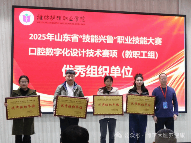 与此同时,我校医养健康学院侯国强老师因在学生指导过程中的出色表现,荣获 “优秀指导教师奖”;学校也凭借在赛事组织、选手选拔与培训工作中的周密安排和突出成效,被授予 “优秀组织单位奖”。这一系列荣誉的获得,既是对我校参赛学子个人能力的肯定,更是对我校口腔医学技术专业教学质量、人才培养模式的高度认可,是学校 “以赛促学、以赛育人” 理念落地见效的生动体现。