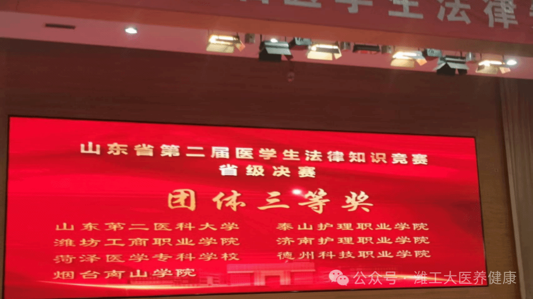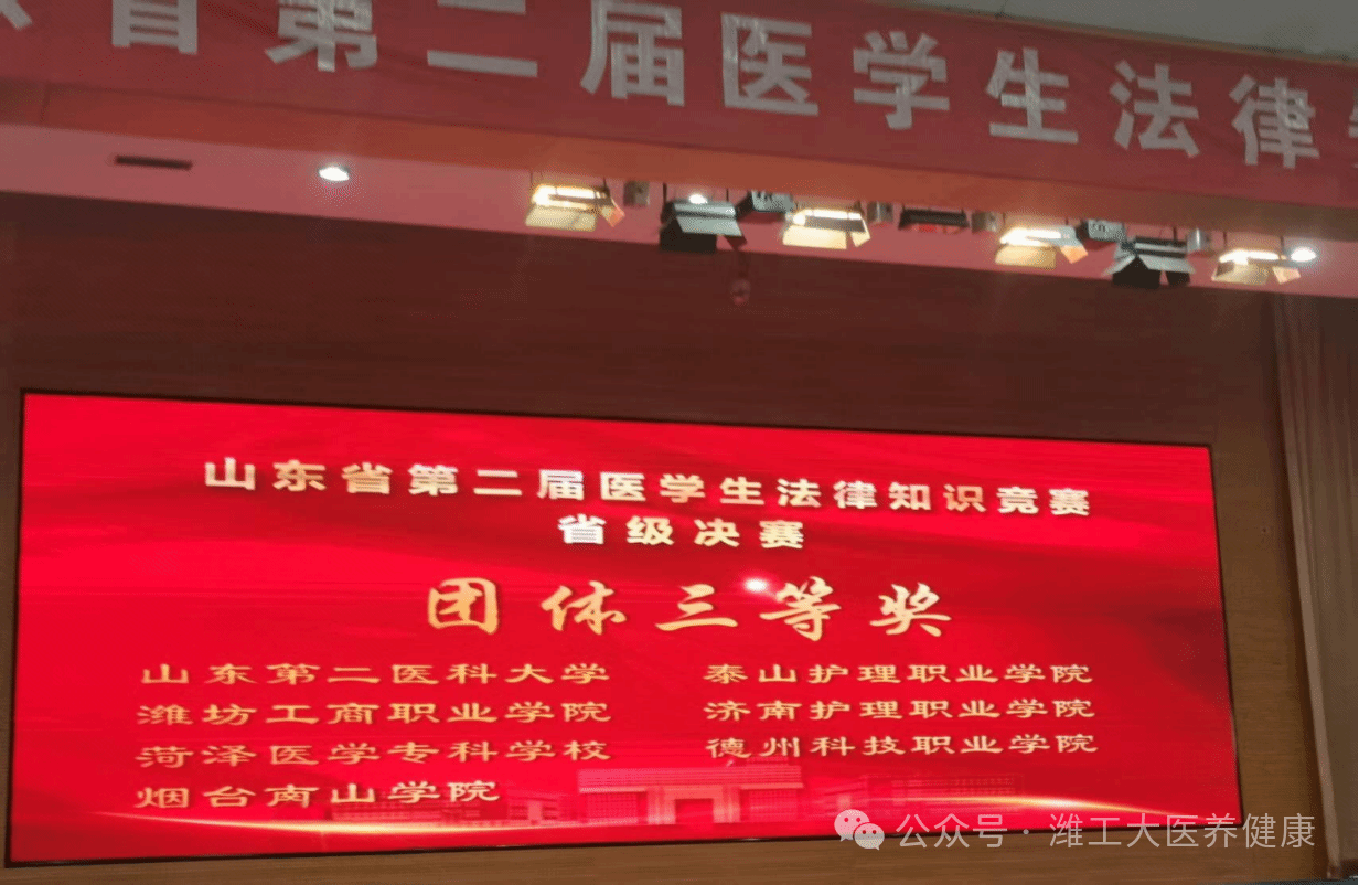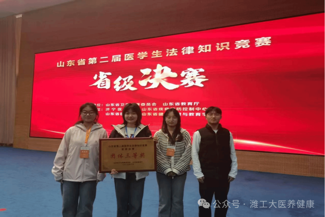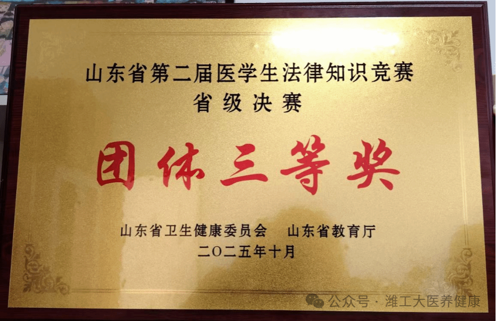 为提升医学生法律素养,夯实医学职业法治根基,2025年10月21-22日,由山东省卫生健康委员会、山东省教育厅联合主办的山东省第二届医学生法律知识竞赛省级决赛在济宁医学院成功举办。来自全省19所本专科院校的学子同台竞技。由董海炯老师指导,苏晓纯老师带队,2023级护理四班马世勇、2024级四班芦慧慧、2024级六班卫桂玲组成的参赛队伍凭借扎实的法律知识储备和出色的团队协作,斩获团体三等奖一项、个人三等奖两项,展现了我院在法治素养培育方面的显著成效。